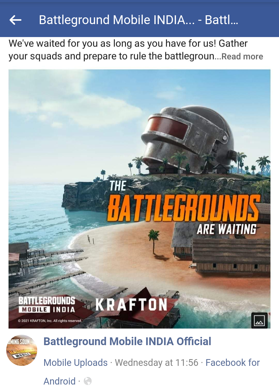 “Hello dear community , We would like to inform everyone that the links to the official Facebook page and YouTube channel of PUBG MOBILE INDIA been updated :